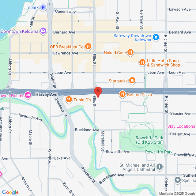 Located on the corner of Ellis St and Hwy 97. Parking available in the plaza.